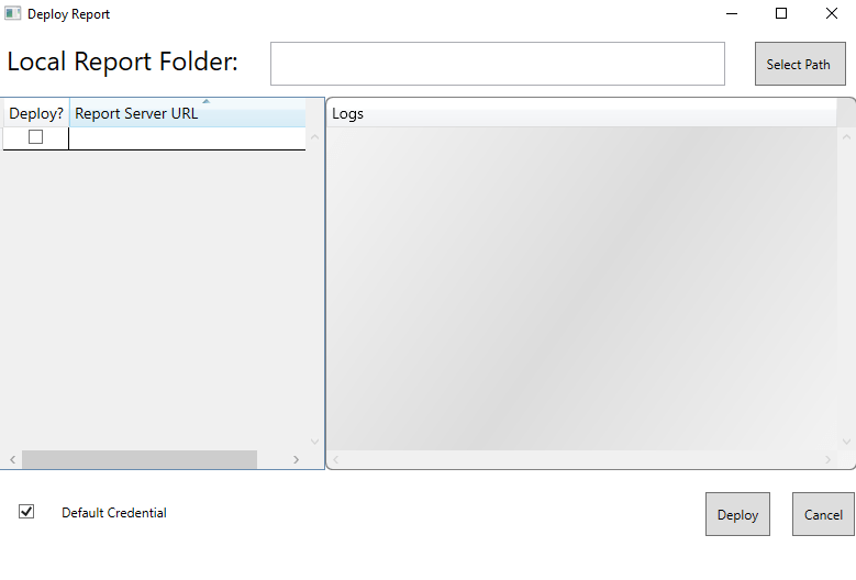 The application support customer credential and default credential .I assume credential is same on all the servers and also all the reports will deploy to same folder named “Reports” .